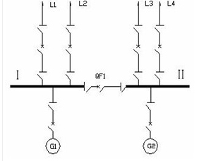 ![]() 圖3 單母線分段帶旁路接線示意圖 |