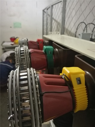 9月17日下午到達**能源公司,這個測溫系統(tǒng)需要安裝的有180個測溫點,2臺RM-C3000G接收主機和 1臺RM-C3000E接收主機。本次工程訂貨安裝非常緊急,客戶要求所有測溫點必須在19日0時前安裝完成。其中有5個柜子特別緊急必須在17日21時點之前必須完成。根據(jù)客戶要求進行柜號排列,并做記錄,然后按順序找出10KV配電室這5個開關柜對應的測溫點序號進行安裝。小車推出后發(fā)現(xiàn)觸頭為倒錐形,合金片收緊困難,溫度探頭難以安裝,施工人員克服種種困難,保質保量并提前2小時完成,主機全部接收到已安裝探頭的溫度數(shù)據(jù)。